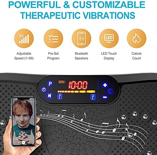 Price AXV Vibration Plate Exercise Machine Full Body Weight Loss Fat Burner Sculpting Shaping Equipment Professional Whole Body Vibration Platform with Music Speaker Fitness Bands for Home Gyms Workout